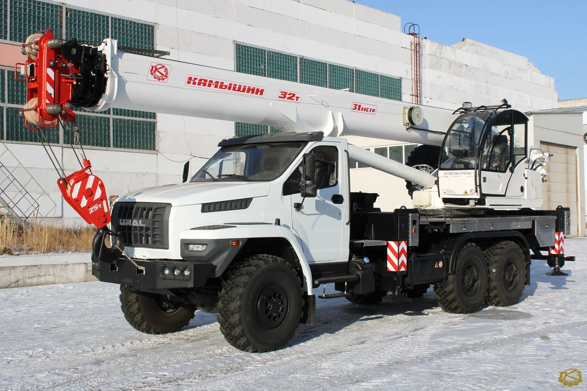 Автокран КС-55729-3К-31 — это мощная грузоподъемная установка 32 тонны, смонтированная на легендарном вездеходном шасси Урал-4320 NEXT. Этот кран создан для эффективной работы в самых сложных условиях: на удаленных объектах, строительных площадках без подготовленных подъездных путей и в условиях бездорожья.