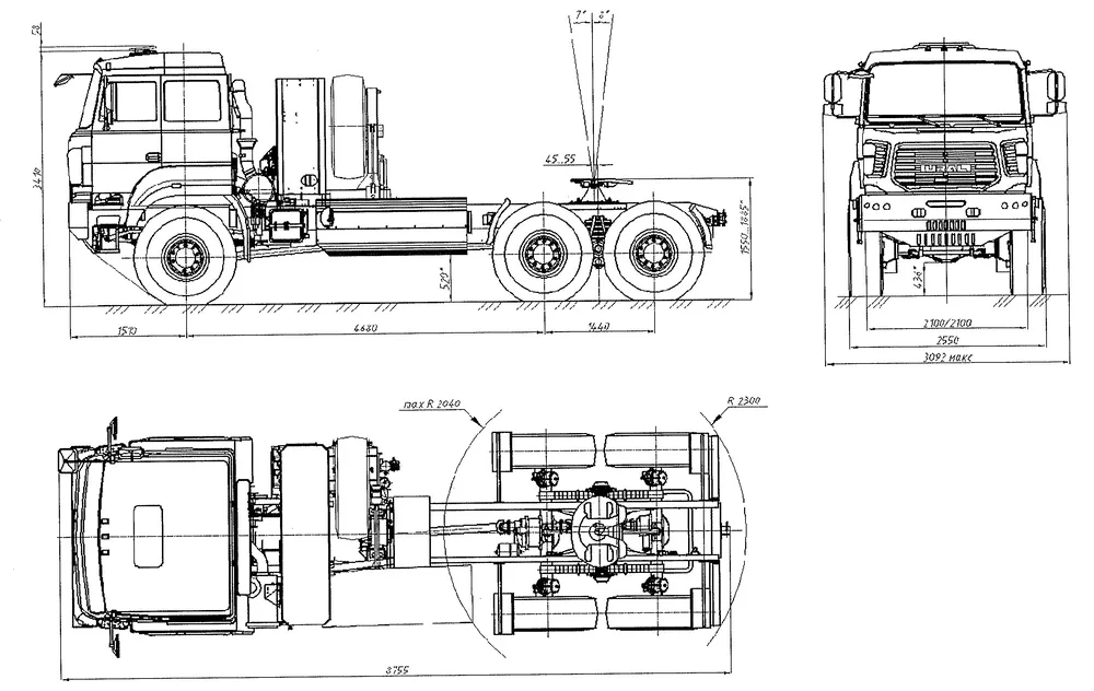 Седельный тягач предназначен для буксирования полуприцепов при температуре окружающего воздуха от -45 °С до +40 °С по всем видам дорог и местности.