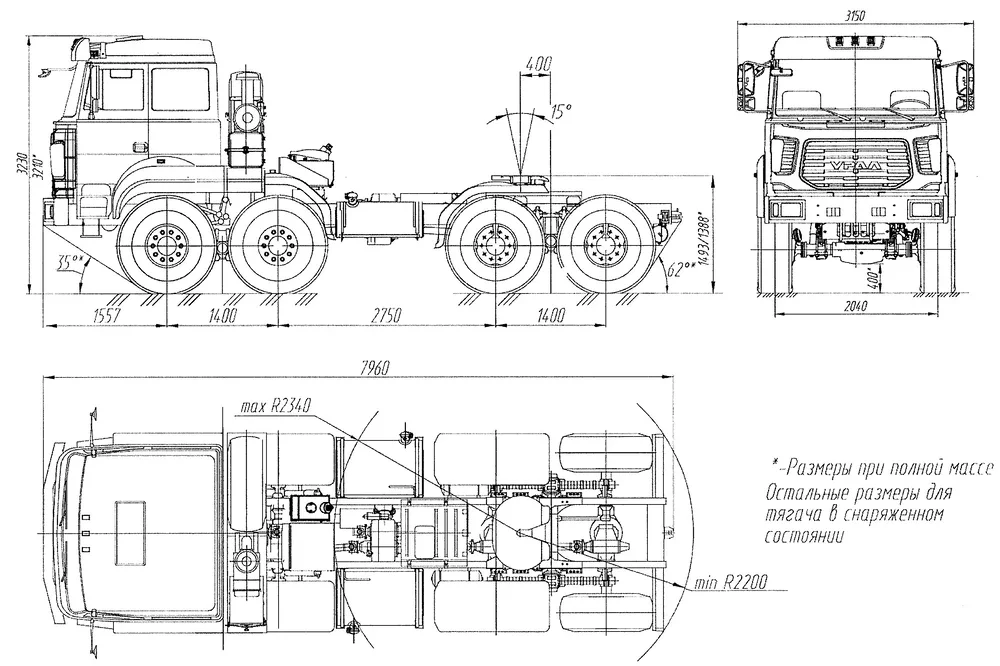 Седельный тягач предназначен для буксирования полуприцепов при температуре окружающего воздуха от -45 °С до +40 °С по всем видам дорог и местности.