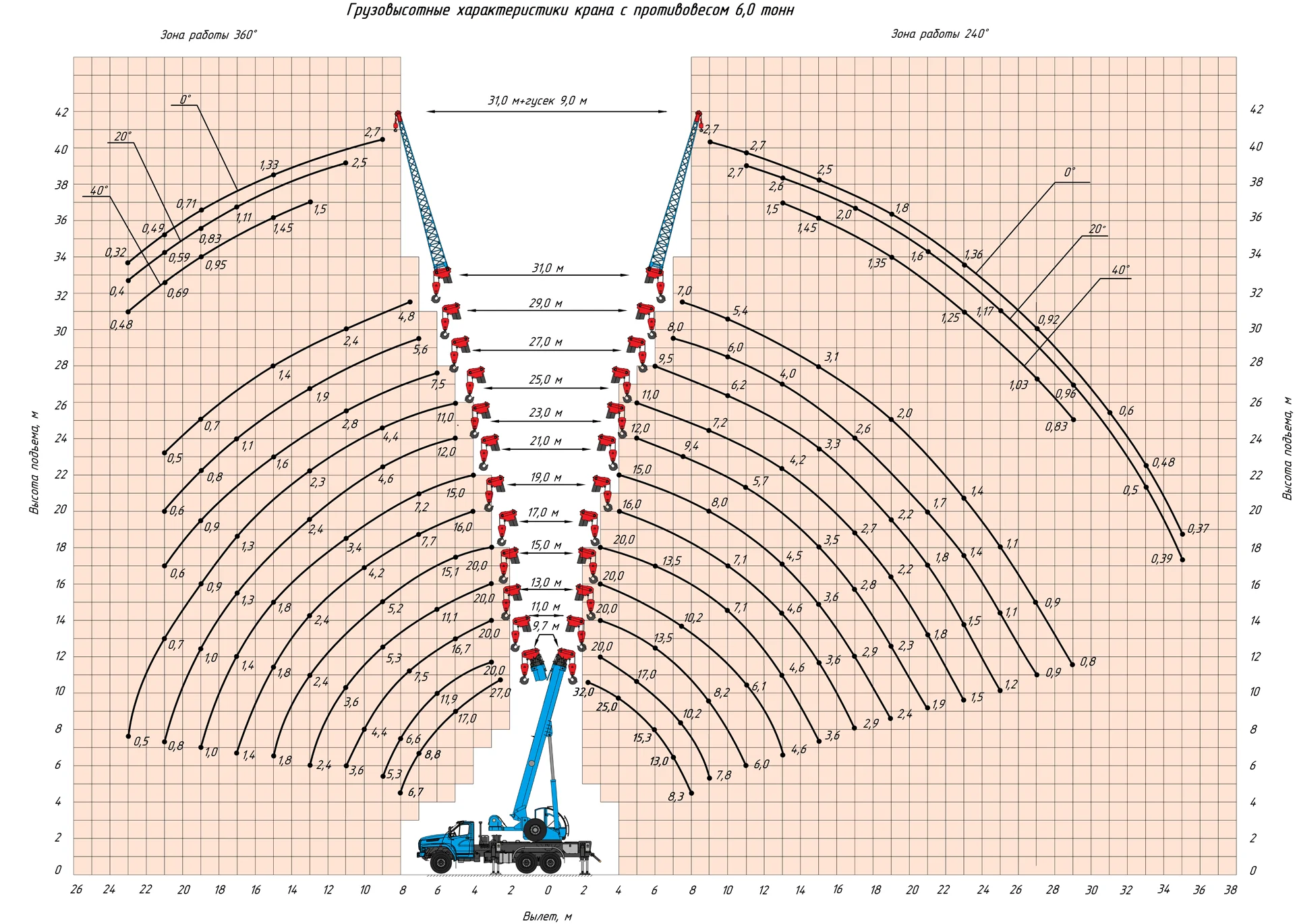 • Производительная стрела 31 м: Четырехсекционная стрела «овоидного» профиля обеспечивает повышенную жесткость, прочность и превосходные грузовысотные характеристики.