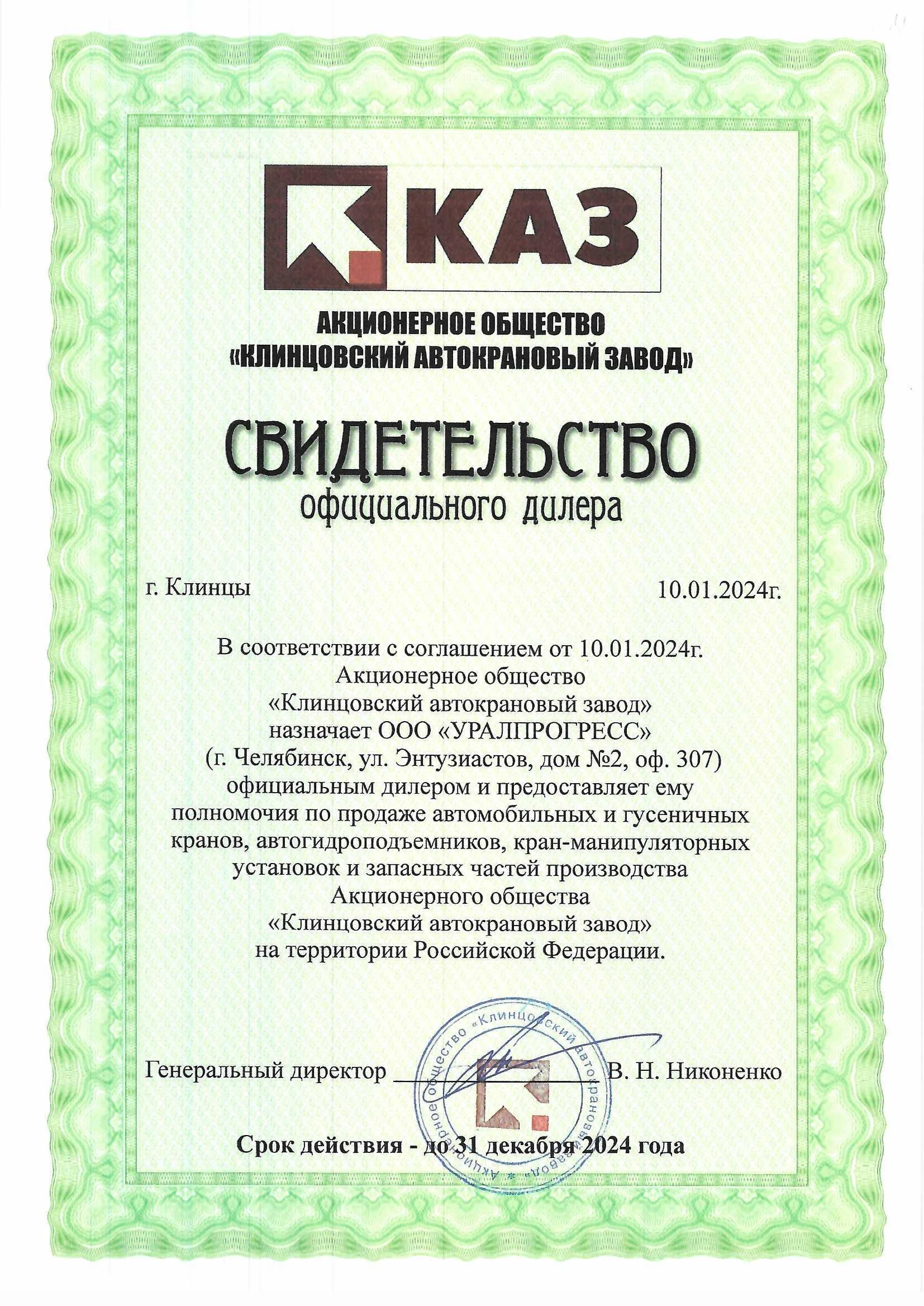 Компания «УРАЛПРОГРЕСС» строит работу на принципах прозрачности и ответственности перед каждым клиентом. На этой странице представлены официальные сертификаты и дилерские свидетельства, которые подтверждают: